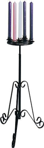Advent ring on stand which is height adjustable from 23in to 41in. The ring measures 9in in diameter and features tulip sconces for 1 1/8in diameter candles. Candles not included.