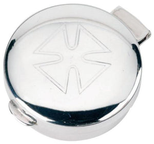 This finely crafted silver-plated pyx is 1 5/8" in diameter and features a hinge (so the lid will never get lost!). It complements the other communion and sick-call set pieces in our range perfectly.