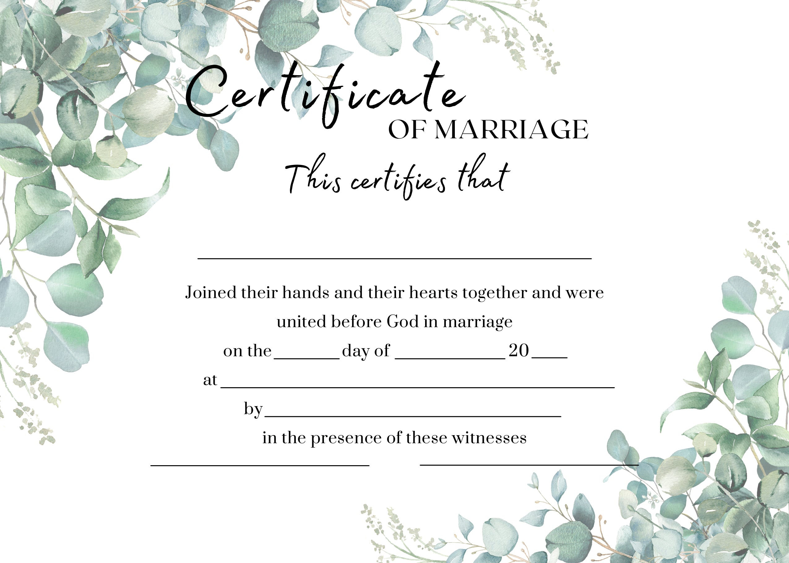 Description: Marriage Certificate - Eucalyptus