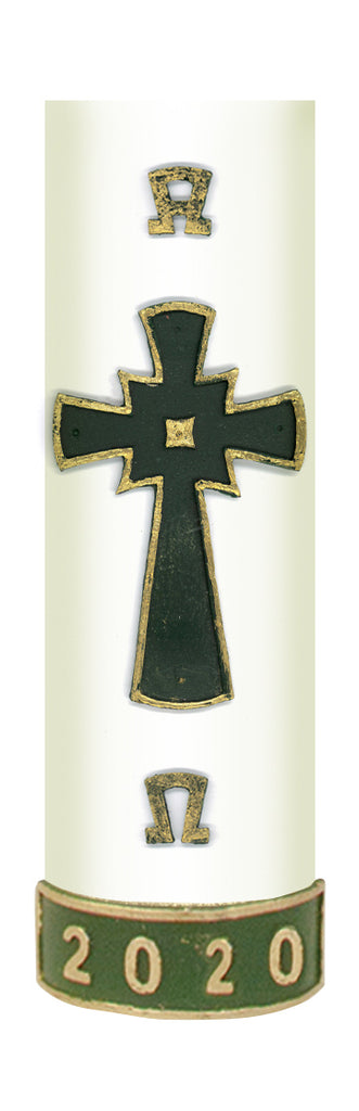 We proudly have our paschal candle with the green cross transfer on display in church it is used on Sundays now as we have resumed services.
