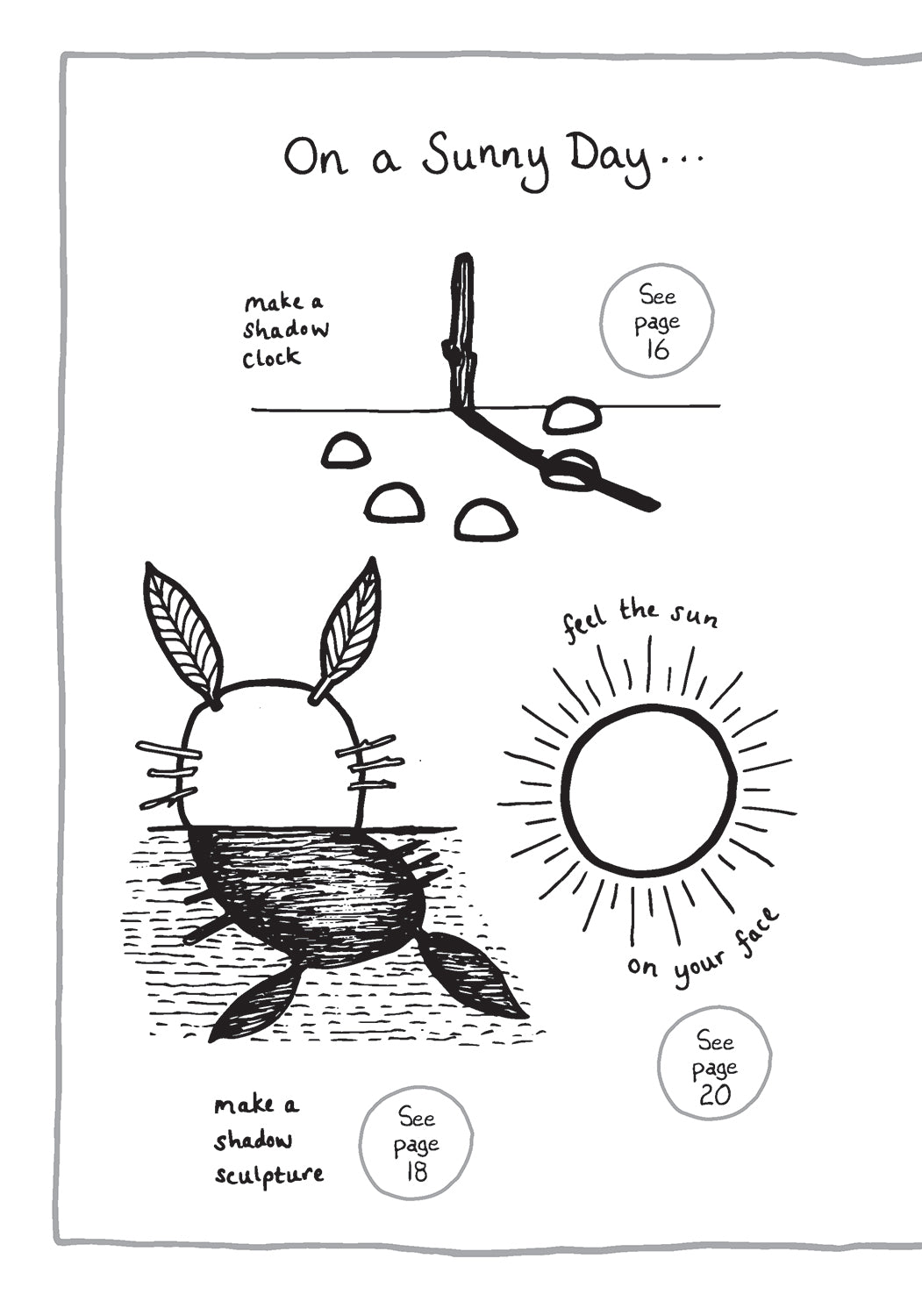 Make a shadow clock Make a shadow sculpture Feel the sun on your face Lie in a hammock Blow bubbles Make a rainbow Things to do when it’s raining