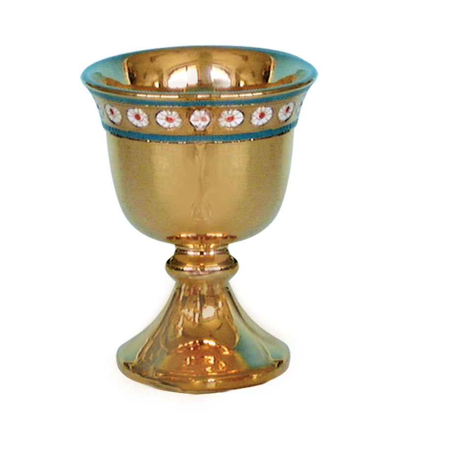 This unique, beautiful range of communion vessels comes from the centuries-old ceramic making tradition. It has been lovingly created by a team of skilled craftsmen and artists. Each hand-made ceramic item has an elegantly-painted outer casing; the inside is brushed with liquid gold and on the third and final firing it is baked solid to produce a shining Gold interior.