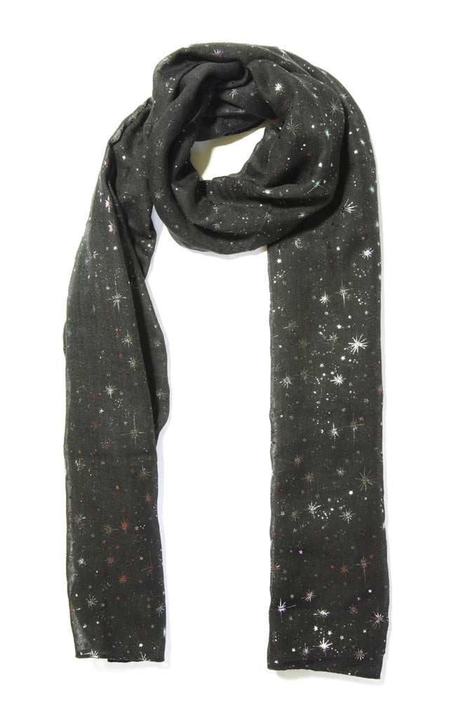 Description: Black Scarf WithSilver Star Print(93027) -Approx 70 X 180 Cm
