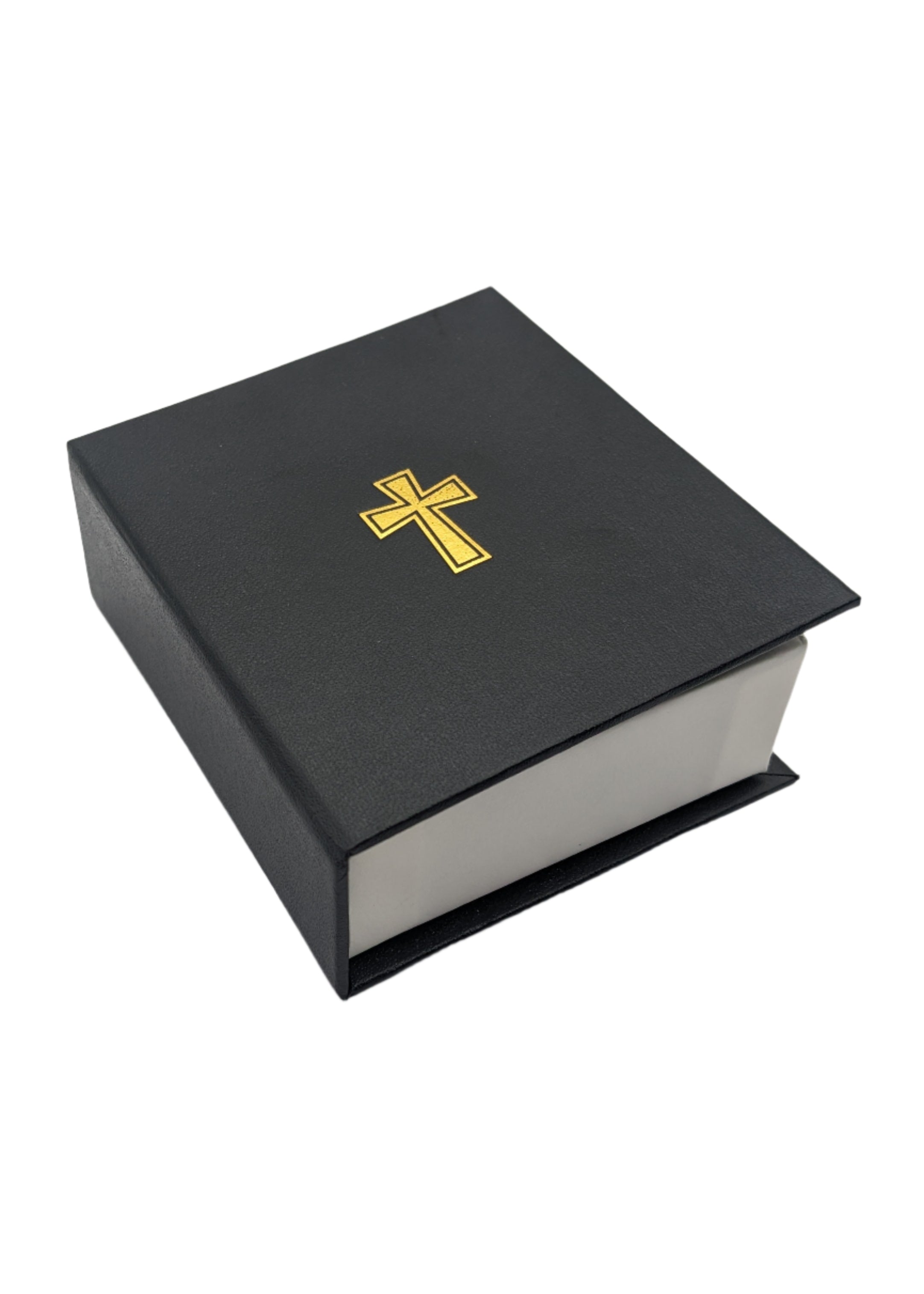 Accompanying the pyx is a unique and meaningful presentation case designed in the style of a Bible that opens like a traditional volume.