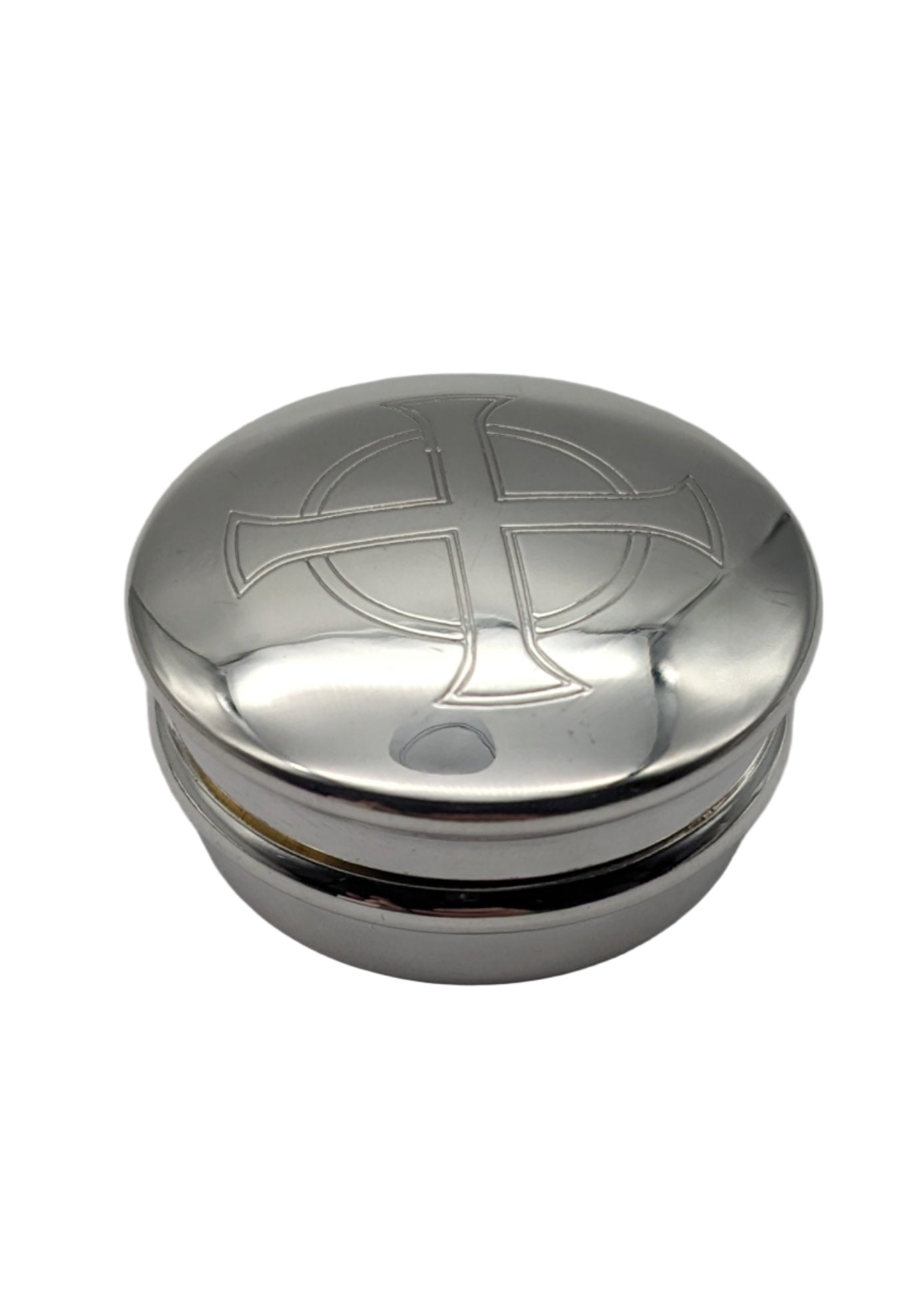 Crafted with reverence and precision, the Cased Rutland Pyx is a beautifully silver-plated vessel designed for the dignified transport of the Blessed Sacrament. Measuring 1 5/8 inches in diameter, this compact yet elegant pyx is ideal for clergy, eucharistic ministers, or laypersons entrusted with bringing Holy Communion to the sick, housebound, or those in hospital care.