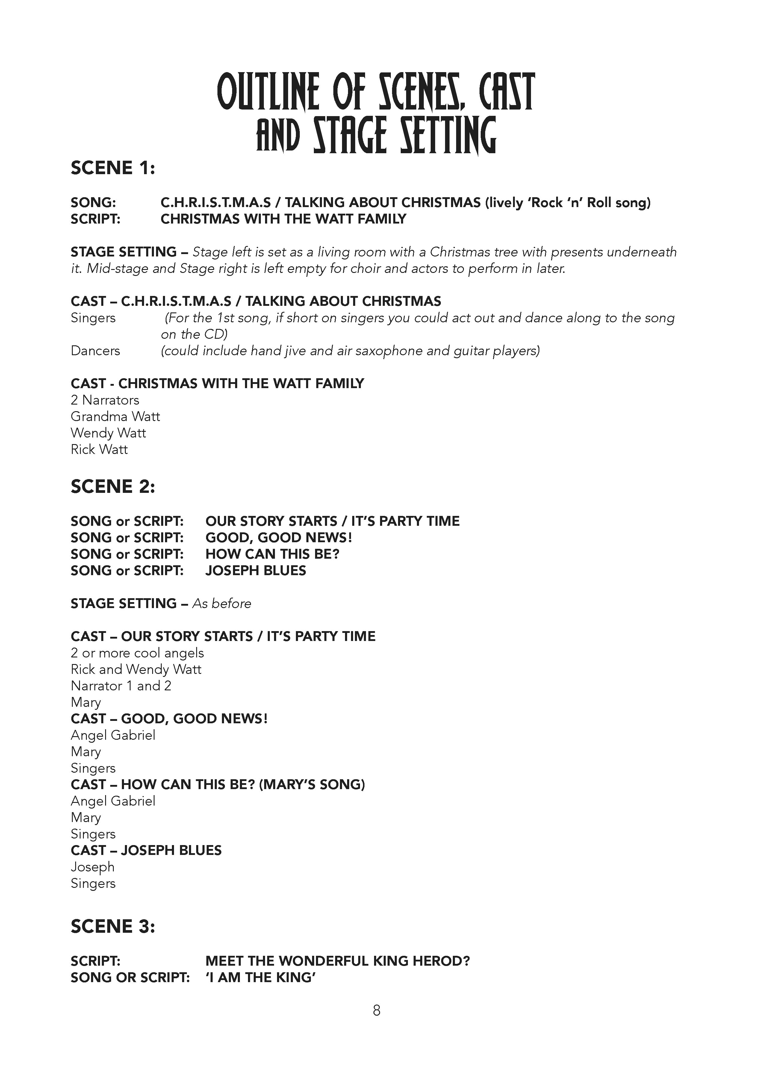 The book contains a full script, scene and cast outline, song lyrics, and sheet music, as well as a CD filled with backing tracks.