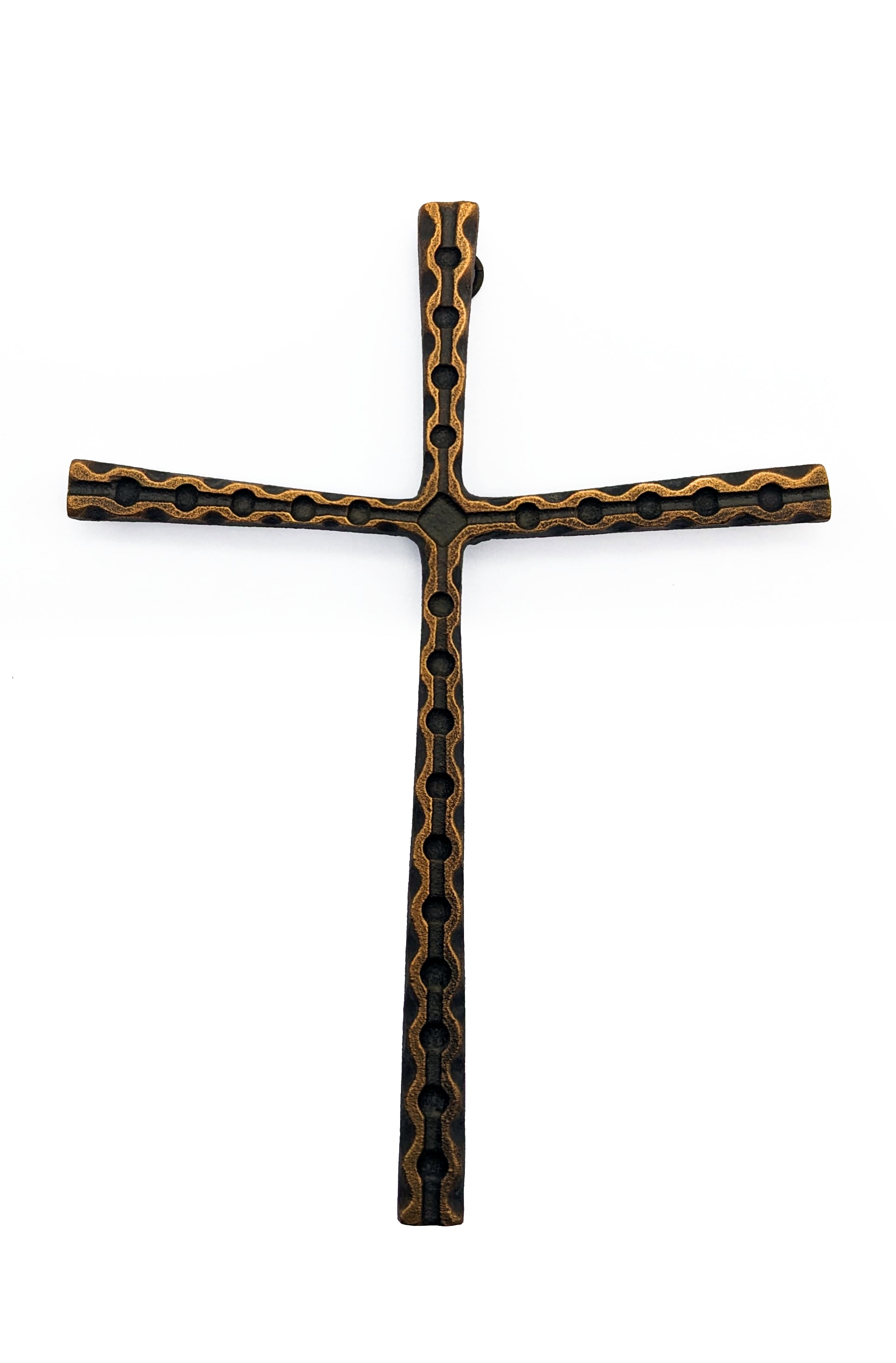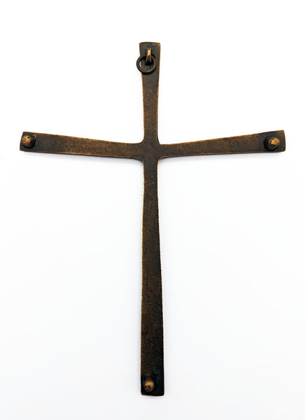 157mm x 120mm bronze wall cross with 5mm stand-offs and ring on the back.