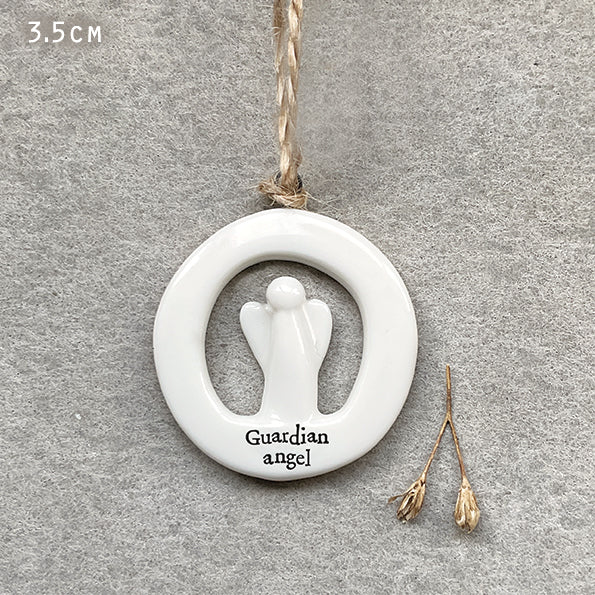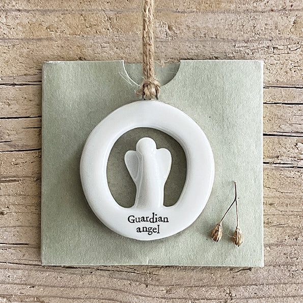 This delicate porcelain hanger features a beautifully crafted cut-out circle with an angel at its heart, symbolizing protection, faith, and serenity. With its minimalist yet elegant design, it’s perfect for hanging in the home, on a Christmas tree, or as a thoughtful keepsake.