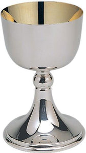 This finely crafted Derby style silver-plated chalice is 6 1/2" high and has a capacity of 14 fl oz. It complements the other Derby style pieces in our altar silver collection perfectly.