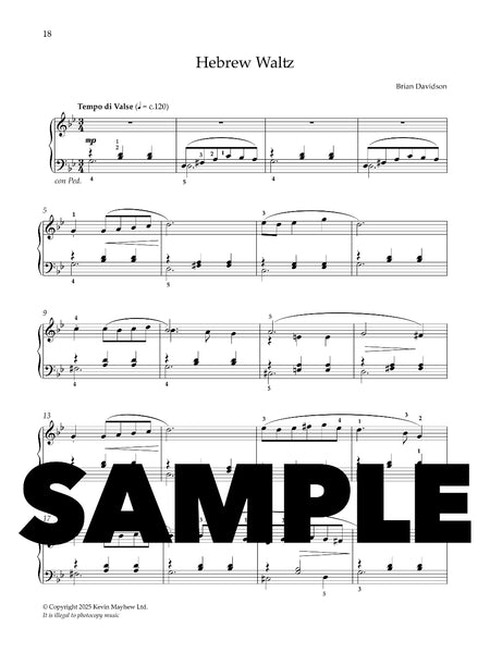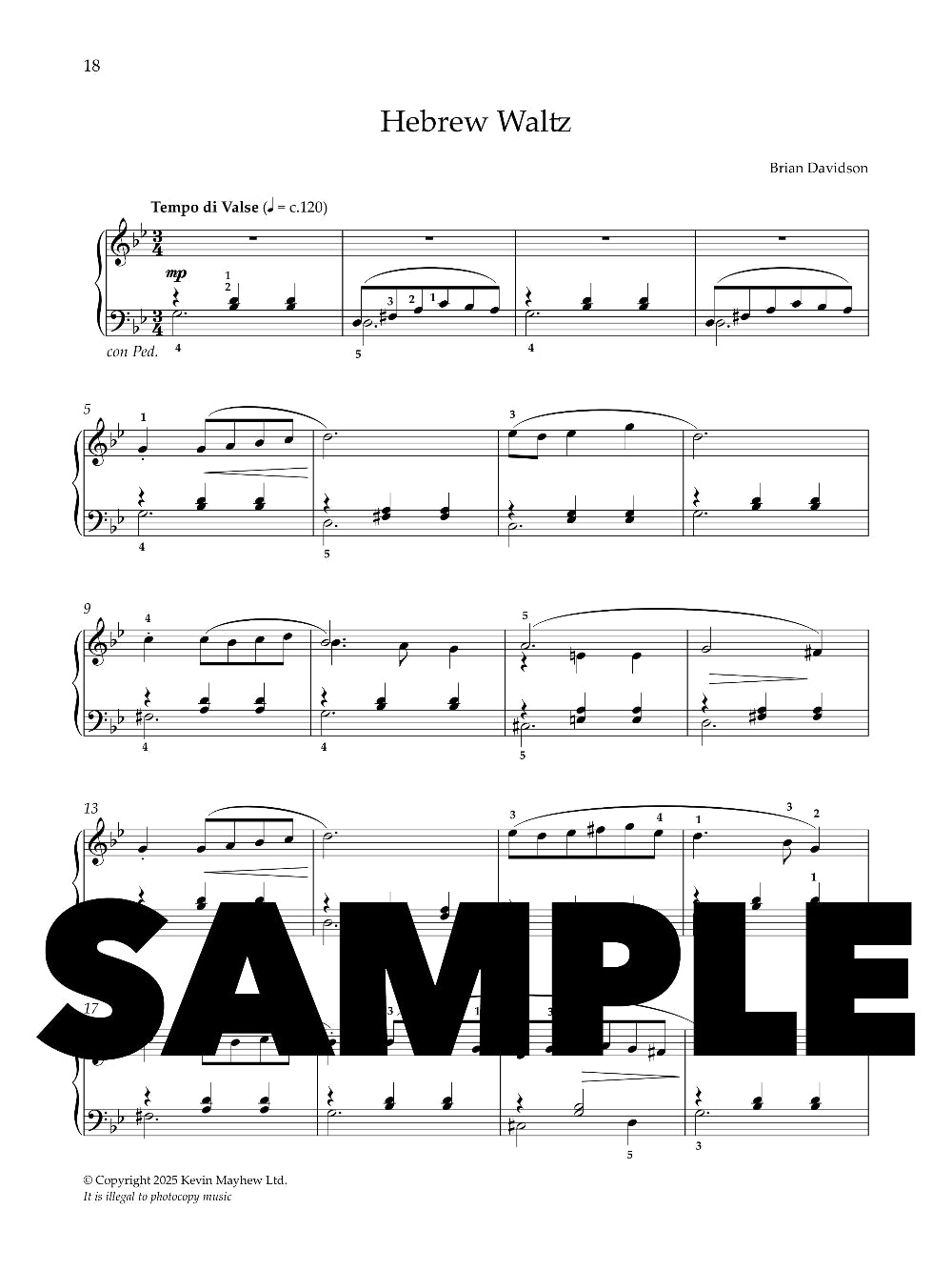 The 'Hebrew Waltz' introduces a new sound world, with modal inflections and a gentle, singing quality. Its flowing lines and subtle rhythmic shifts evoke a sense of nostalgia and warmth, while the use of pedal and carefully placed accents add depth and resonance.
