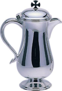 This finely crafted Old English style silver plated flagon holds 12 fl oz. The design complements the other Old English style pieces in our altar silver collection perfectly.