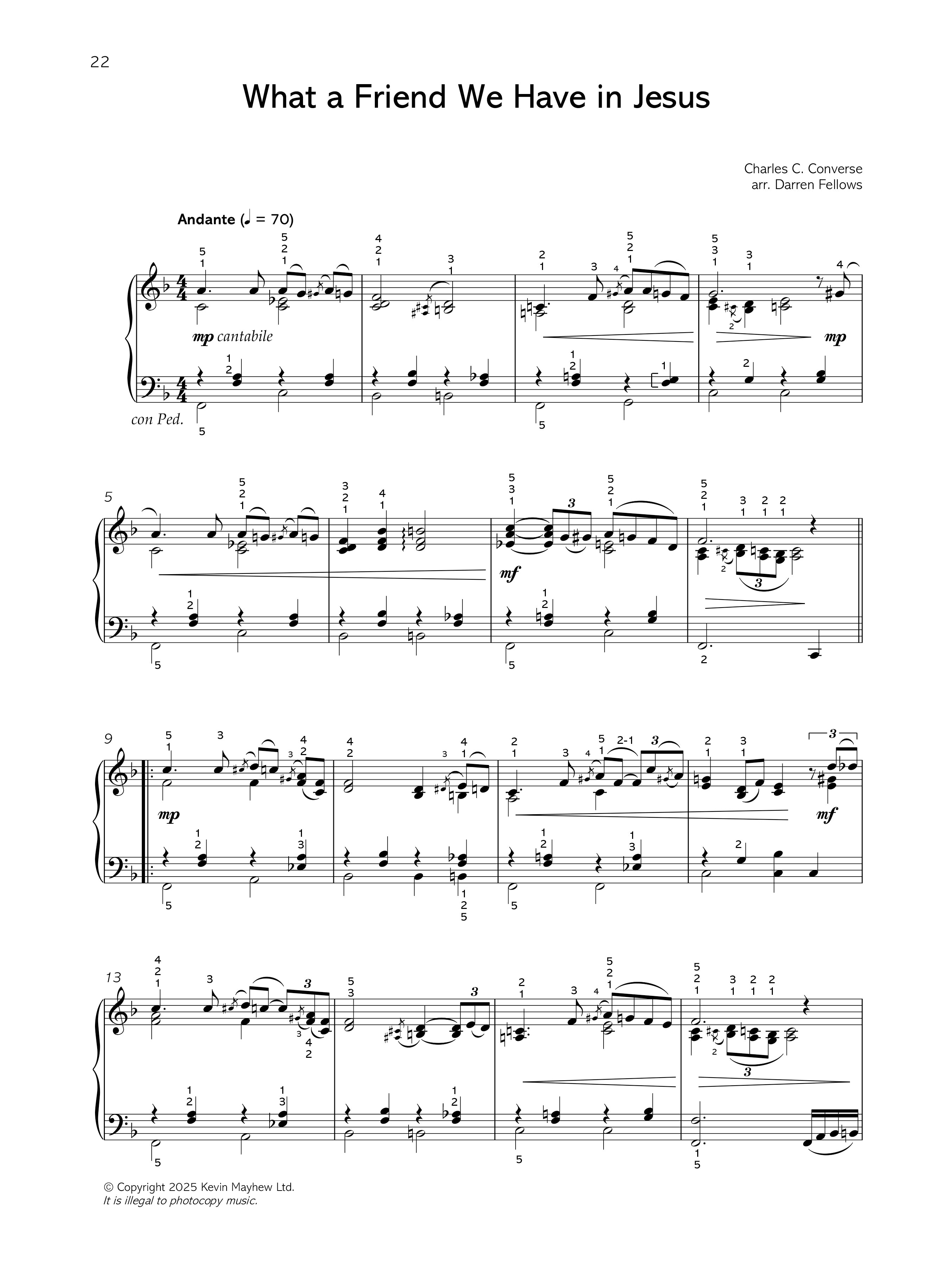 Each arrangement includes detailed fingering with authentic jazz harmonies, extended chords, and rhythmic variations. Suitable for intermediate to advanced pianists, church musicians expanding their harmonic vocabulary, or jazz players seeking spiritually grounded repertoire.