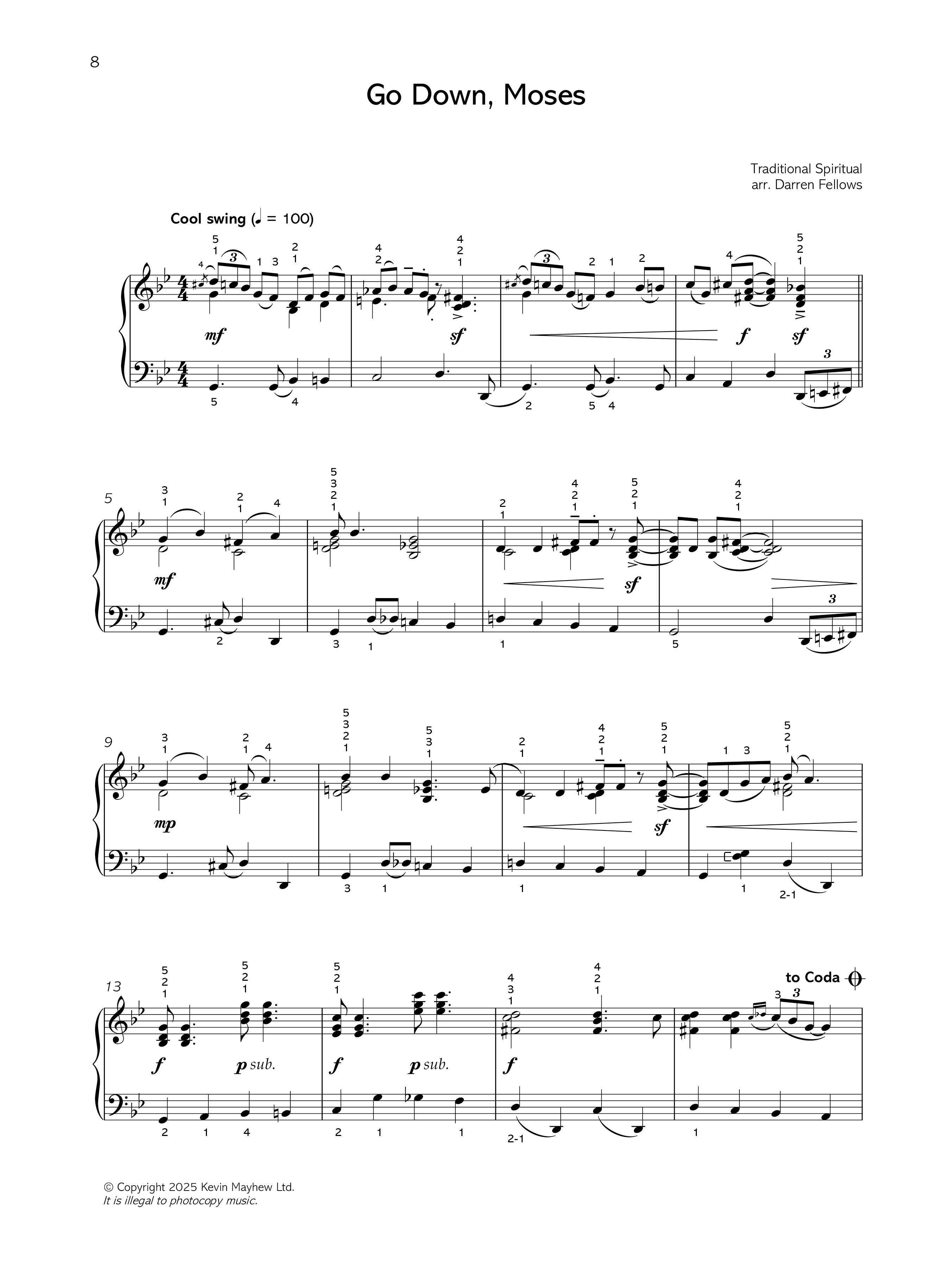Arranged by Darren Fellows, these pieces blend traditional gospel melodies with modern jazz techniques - seventh chords, syncopated rhythms, and sophisticated voice leading - perfect for both worship and performance contexts.