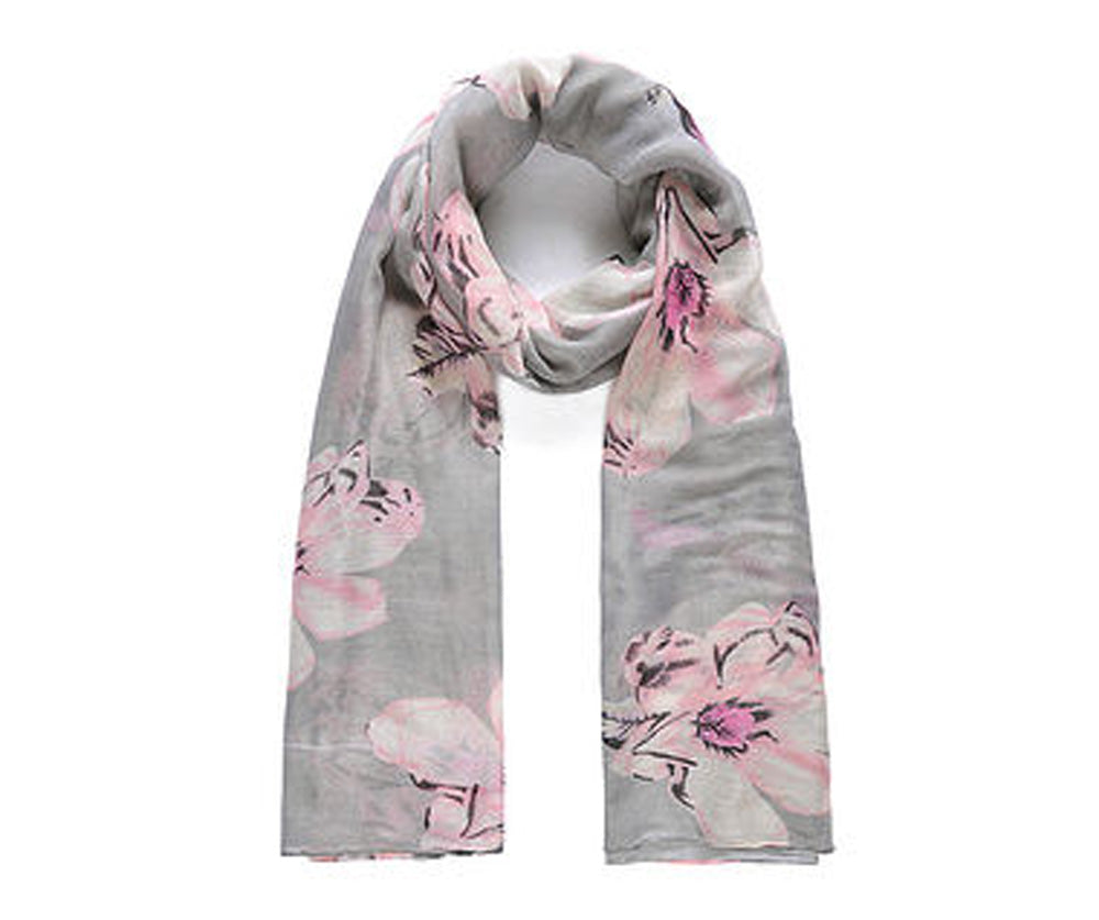 A symbol of eternal femininity, flowers get a beautiful update with this scarf. This scarf will blossom against any dark monochromes thanks to its intricate hand-painted style flower print.