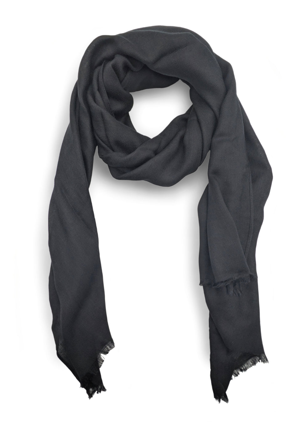 Simple black scarf with woven patterned material. Approx. 65cm x 165cm.100% Polyester (Hand wash separately)