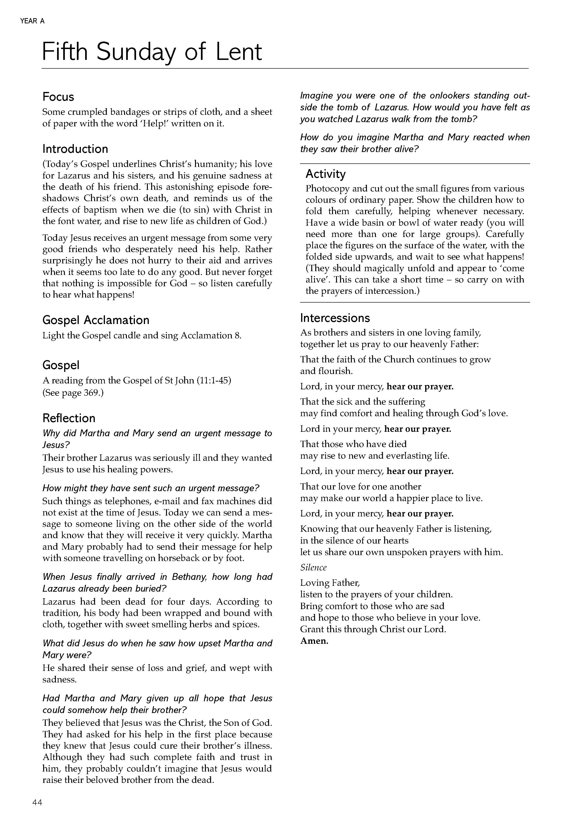 Here you will find a complete but flexible scheme for celebrating the Liturgy of the Word for every Sunday of the three-year cycle. Each of the 163 sessions is packed full of ideas, readings, songs, prayers and photocopiable activities that encourage young people in a way that is real and meaningful.