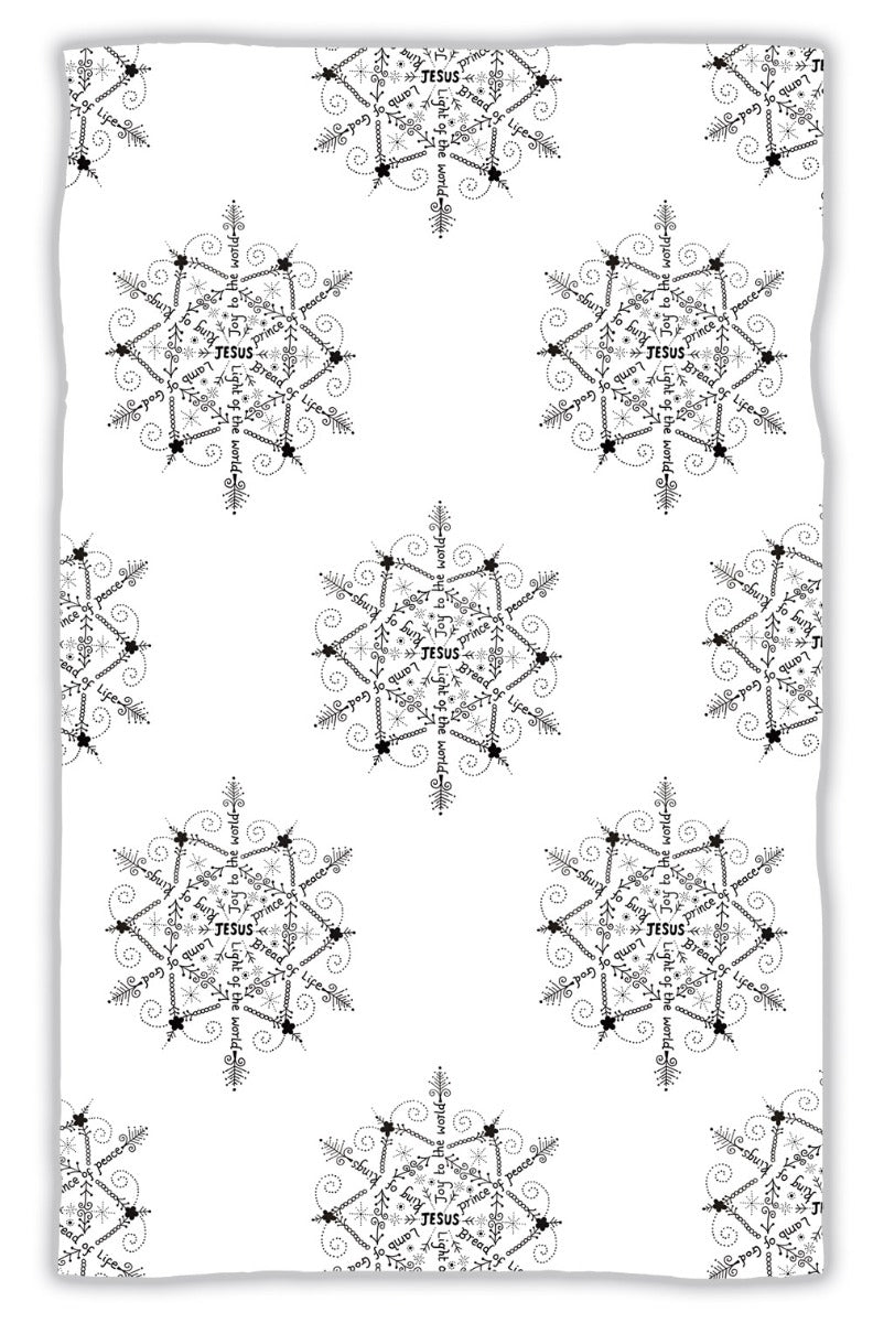 Christmas Snowflake Tea Towel featuring the names of Jesus by Yorkshire based artist Meghan Earle.A beautiful inspriational Christmas gift featuring a black and white design.