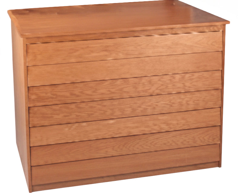 This Vestment Press is a specialist piece of church furniture, designed to provide dignified and protective storage for liturgical garments. Crafted from high-quality oak and oak veneer, it is essential for keeping vestments such as chasubles, albs, and stoles organised, protected, and free from wrinkles.