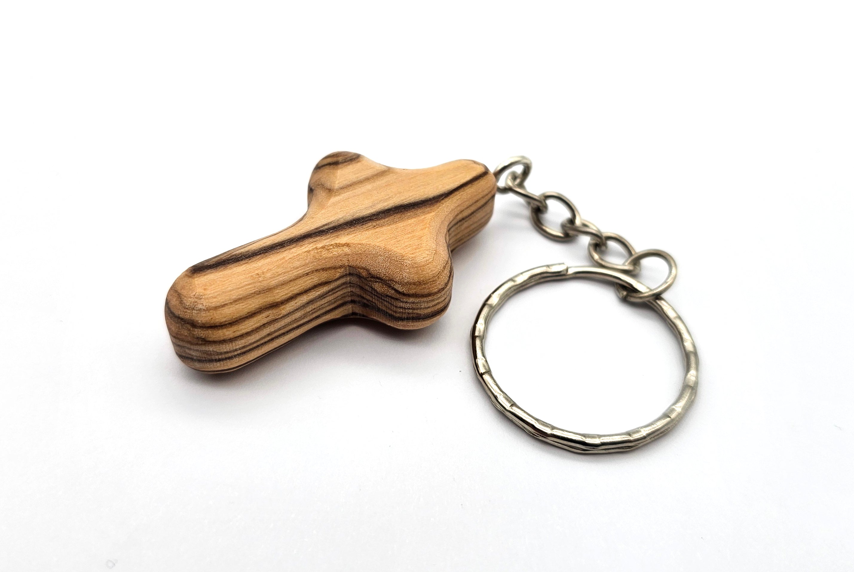 At 4.5cm tall, this cross is perfectly sized for daily use while serving as a constant reminder of your faith and connection to the Holy Land. The smooth finish and comfortable feel make it a joy to hold, while the sturdy metal keyring ensures your keys stay secure.