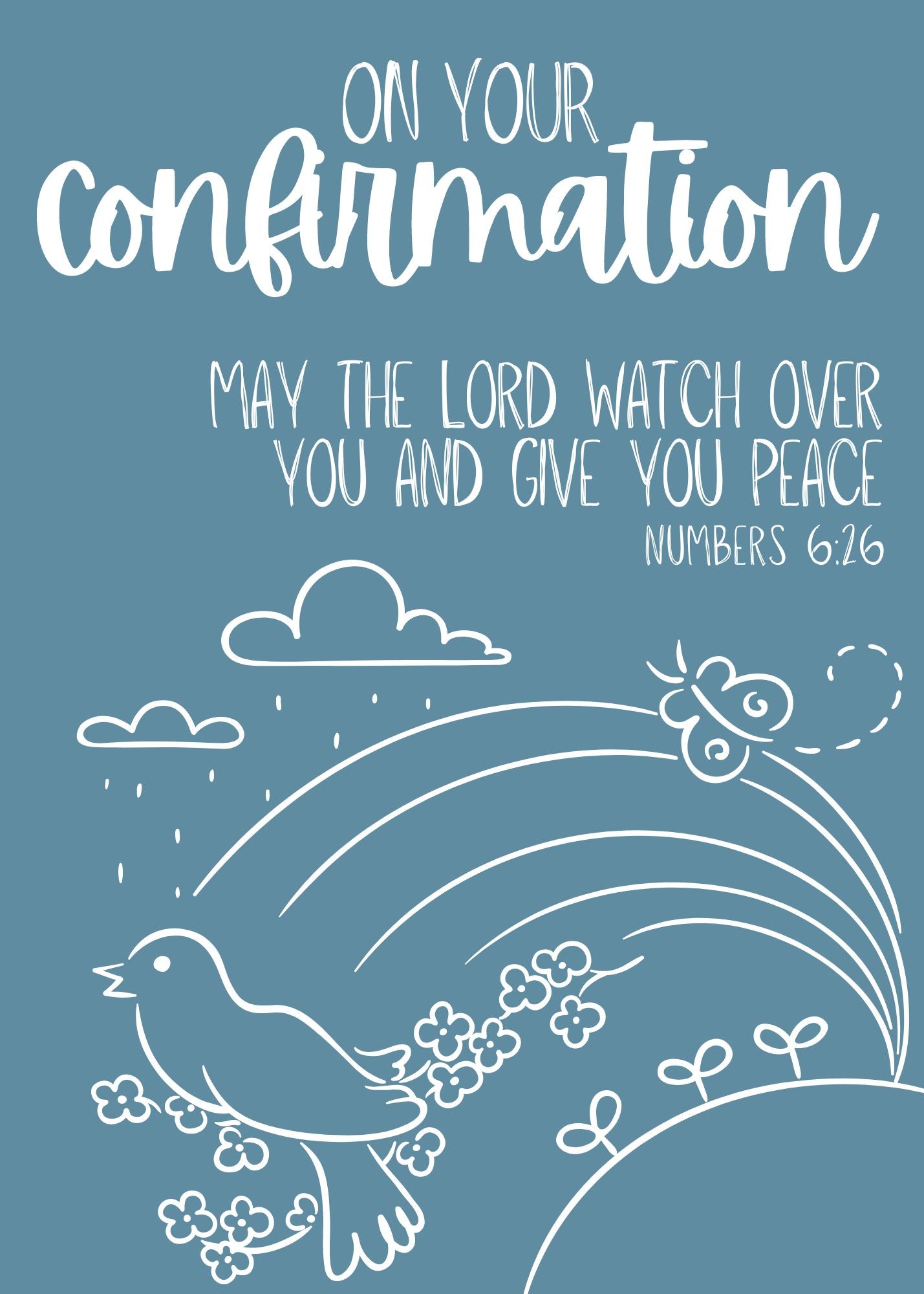 The front message reads: "On Your Confirmation" "May the Lord watch over you and give you peace." Numbers 6:26