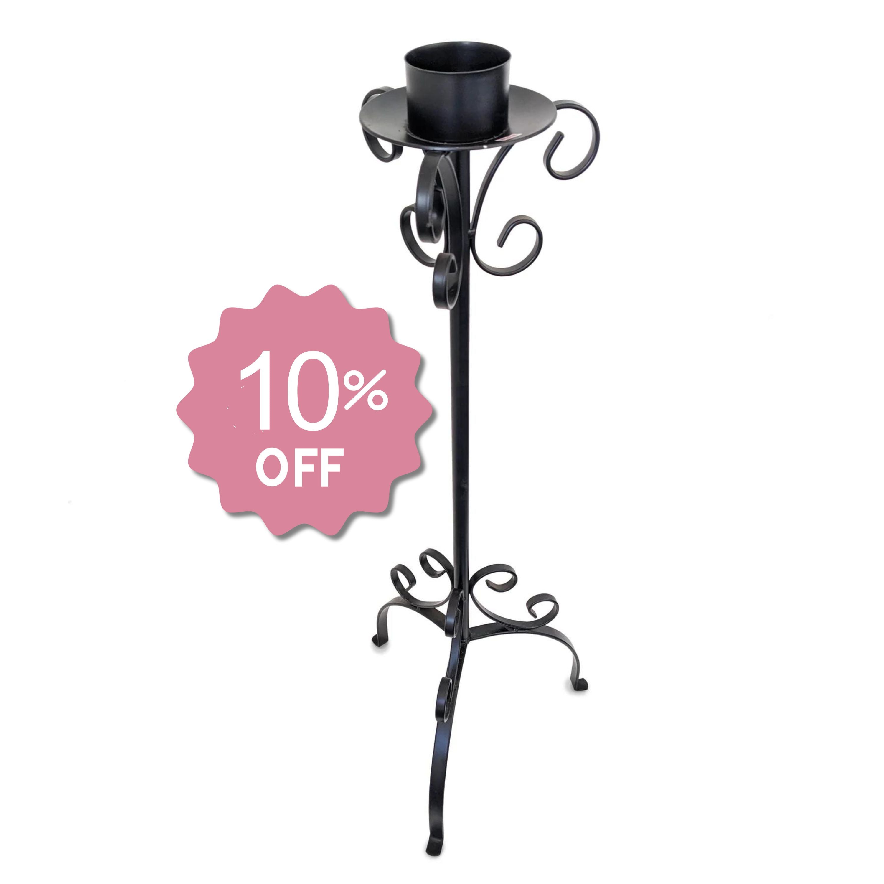 This solid wrought iron paschal candle stand is 36in tall and takes a 3in paschal candle.