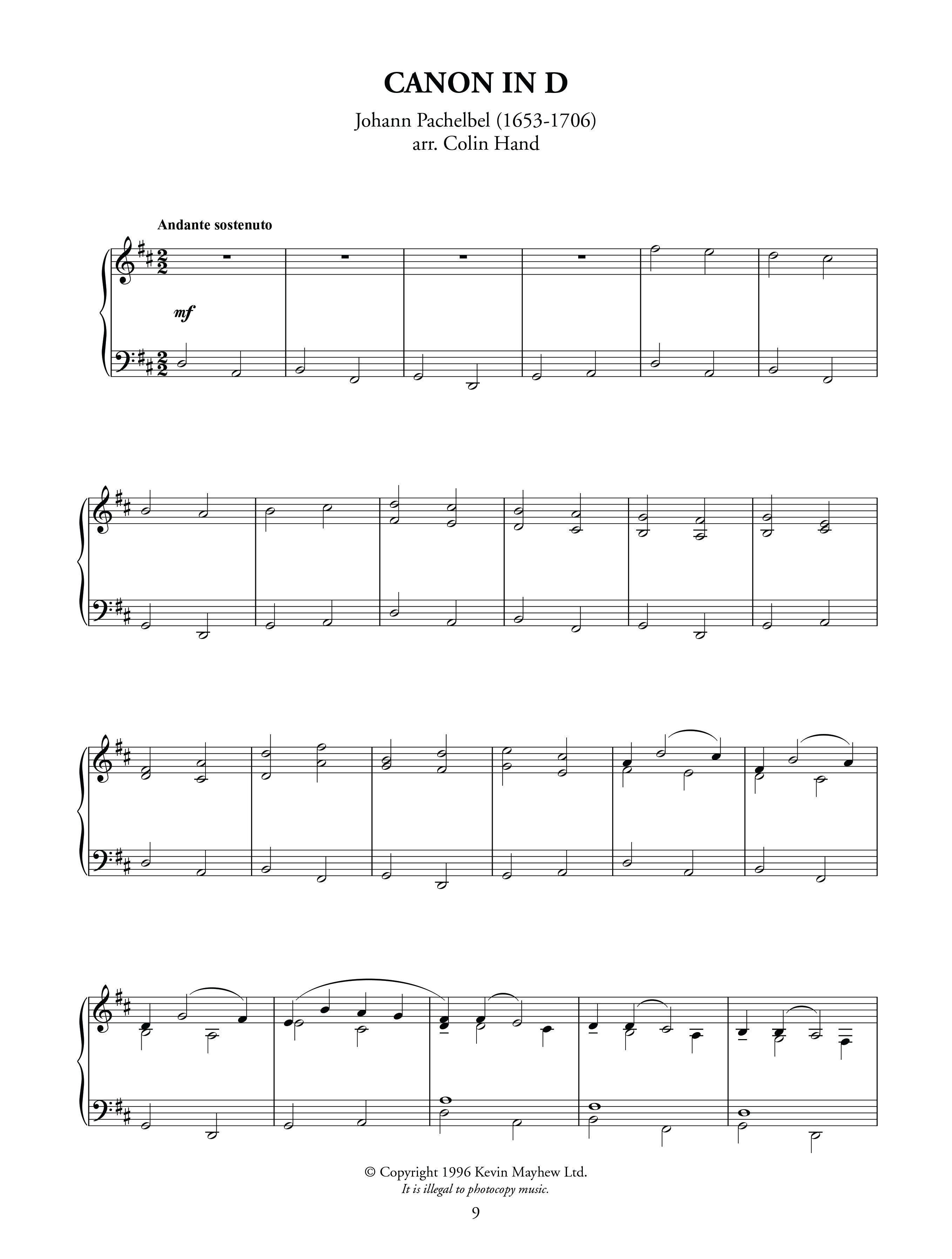 Adagietto from Symphony No 5 - Mahler Adagio from Clarinet Concerto - Mozart Adagio from Violin Concerto No 1 - Bruch Air from Suite No 3 - J. S. Bach Alleluia from Exsultate Jubilate -Mozart Andante con moto from Six Pieces for Children - Mendelssohn Andante from Piano Concerto No 21 - Mozart Andante from Piano Sonata K. 545 - Mozart Arrival of the Queen of Sheba - Handel Ashokan Farewell - Ungar Ave Maria - Gounod Ave Maria - Schubert Ave verum corpus - Mozart Barcarolle from The Tales of Hoffmann - Offenbach Canon in D - Pachelbel Cantique de Jean Racine - Fauré Cavatina - Mendelssohn Chanson de matin - Elgar Chorus of the Hebrew Slaves from Nabucco - Verdi Dance of the sugar-plum fairy from The Nutcracker - Tchaikovsky Eine kleine Nachtmusik, Allegro, Romanze, Menuetto and trio Rondo - Mozart Embraceable you - Gershwin Finale from Trumpet Concerto - Haydn First movement from 'Moonlight' Sonata - Beethoven First movement from Symphony No 40 - Mozart Fourth movement from Sonata for Violin and Piano - Franck Für Elise - Beethoven Galop and can-can from Orpheus in the Underworld - Offenbach Gavotte from French Suite No 5 - J. S. Bach Gavotte from Suite No 3 - J. S. Bach Gymnopédie No 1 - Satie HabaÝera from Carmen - Bizet Hallelujah Chorus from Messiah - Handel I know that my Redeemer liveth from Messiah -Handel Intermezzo from Cavalleria Rusticana - Mascagni Jerusalem - Parry Jesu, joy of man's desiring - J. S. Bach Jupiter from The Planets - Holst Land of hope and glory - Elgar Largo from Serse - Handel Laudate Dominum from Exsultate Jubilate - Mozart March from The Nutcracker - Tchaikovsky March militaire - Schubert Mazurka Op 67, No 2 - Chopin Meditation from ThaÝs - Massenet Melody in F - Rubinstein Minuet in G - Beethoven Miserere - Allegri Morning from Peer Gynt - Grieg Nessun dorma from Turandot - Puccini Nimrod from Enigma Variations - Elgar O du mein holder - Abendstern from Tan Hauser - Wagner O for the wings of a dove - Mendelssohn O mio babbino caro from Gianni Schicchi - Puccini Ode to joy from Symphony No 9 - Beethoven Panis angelicus - Franck Pie Jesu from Requiem - Fauré Pilgrims' Chorus from Tan Hauser - Wagner Pizzicato polka - Strauss II Plaisir d'amour - Martini Polovtsian dance from Prince Igor - Borodin Prelude from Te Deum - Charpentier Prelude in A - Chopin Prelude in C minor - Chopin Prelude in E minor - Chopin Promenade from Pictures at an Exhibition - Mussorgsky Radetzky march - Strauss Rondo from Horn Concerto No 4 - Mozart Rondo from Piano Sonata K. 545 - Mozart Salut d'amour - Elgar Second movement from 'Pathétique' Sonata - Beethoven Second movement from Symphony No 9 From the New World - Dvor˘ák Siegfried idyll - Wagner Summertime - Gershwin The Blue Danube waltz - Strauss II The Entertainer - Joplin The Swan from Carnival of the Animals - Saint-Saëns Theme from Finlandia - Sibelius Themes from The Four Seasons, Spring, Summer, Autumn, Winter - Vivaldi To a wild rose - MacDowell Trïmerei - Schumann Trumpet tune - Purcell Trumpet voluntary - Clarke Waltz - Schubert Waltz - Brahms Waltz from Sleeping Beauty - Tchaikovsky Waltz from Swan Lake - Tchaikovsky Water Music, Air, Bourrée, Hornpipe I, Hornpipe II - Handel Wedding march from Symphony No 3 - Saint-Saëns Where'er you walk - Handel William Tell overture - Rossini
