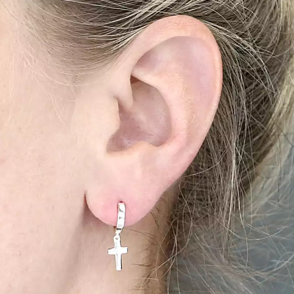 The secure hinged clasp makes them easy to wear, while the small yet eye-catching cross drop adds just the right amount of movement and expression. A meaningful gift or a stylish staple for your own collection, these earrings are designed to shine for years to come.