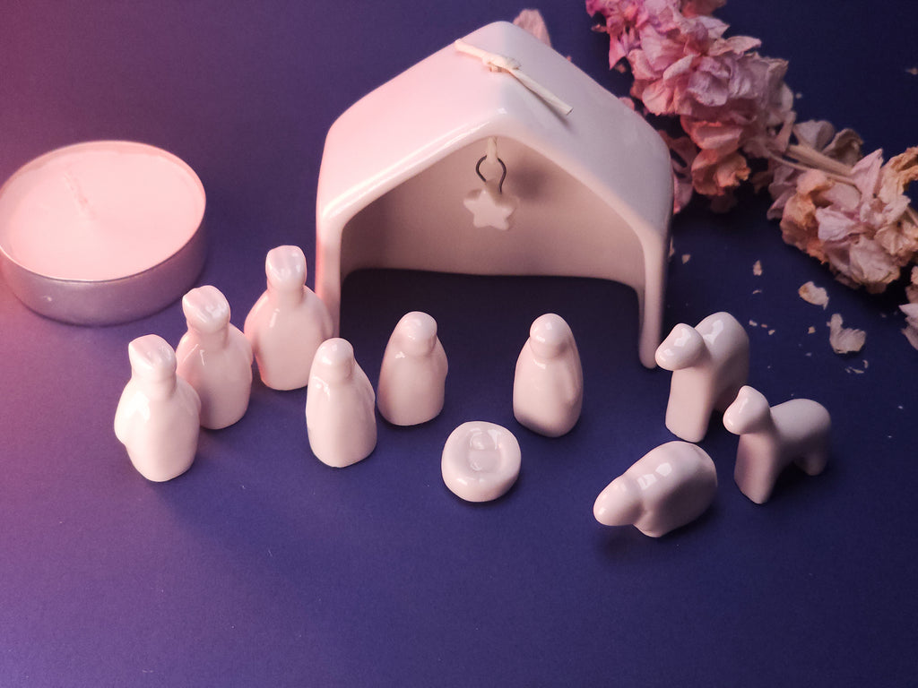 Celebrate the true meaning of Christmas with this beautifully crafted porcelain Nativity set. Featuring a delicate, minimalist design, this compact yet elegant piece is perfect for displaying on a mantelpiece, shelf, or as a thoughtful gift. Measuring 13 x 7 x 4cm, it’s ideal for bringing a touch of peace and reflection to any space. A timeless addition to your Christmas décor.
