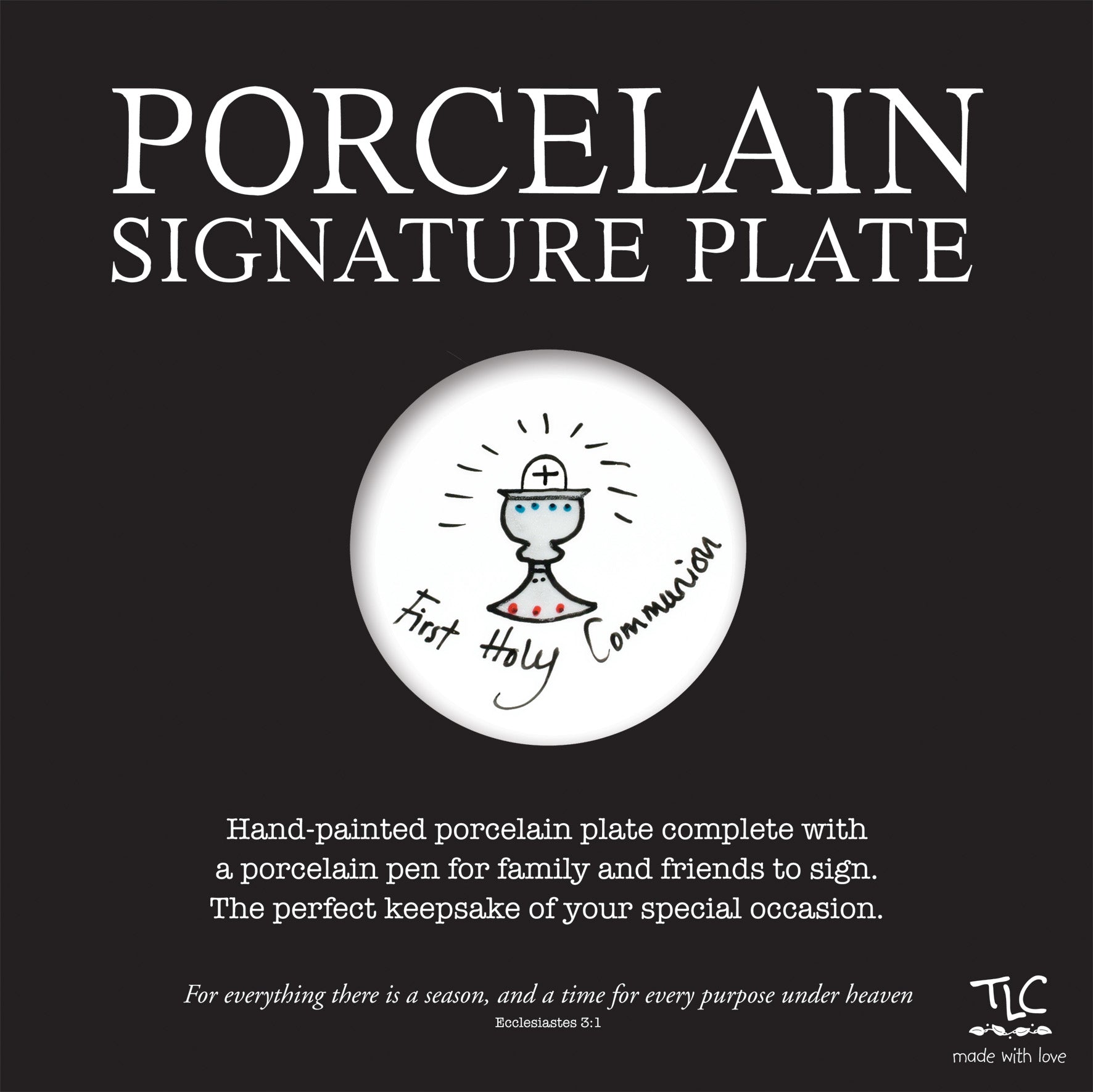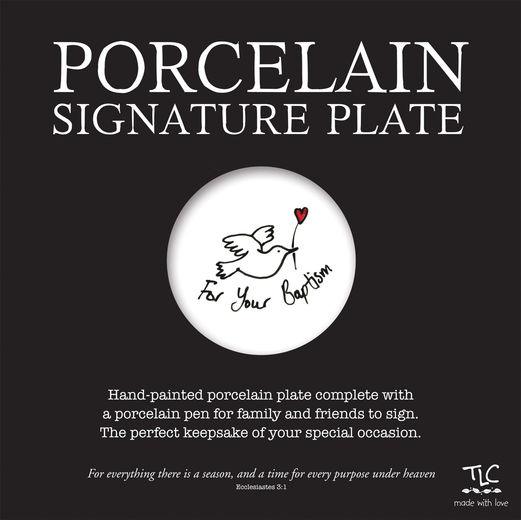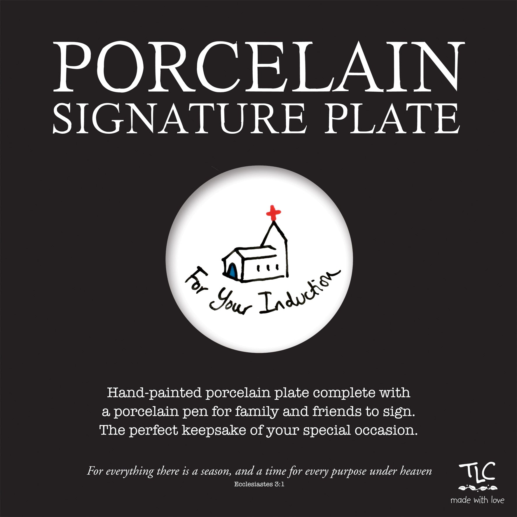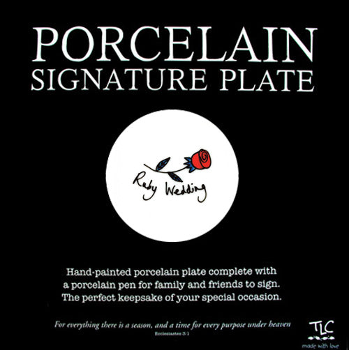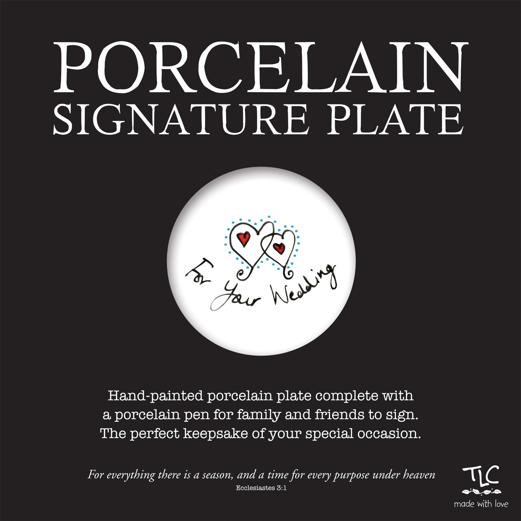 The signature plate is a unique idea. Each 262mm diameter plate comes with its own porcelain pen for your friends, family and party guests to sign or draw on the plate. Once the designs are dry (which takes seconds) the plate can then be cooked in a normal oven to seal the artwork. It is then ready to be displayed, used or cherished as an everlasting memento of your special day.
