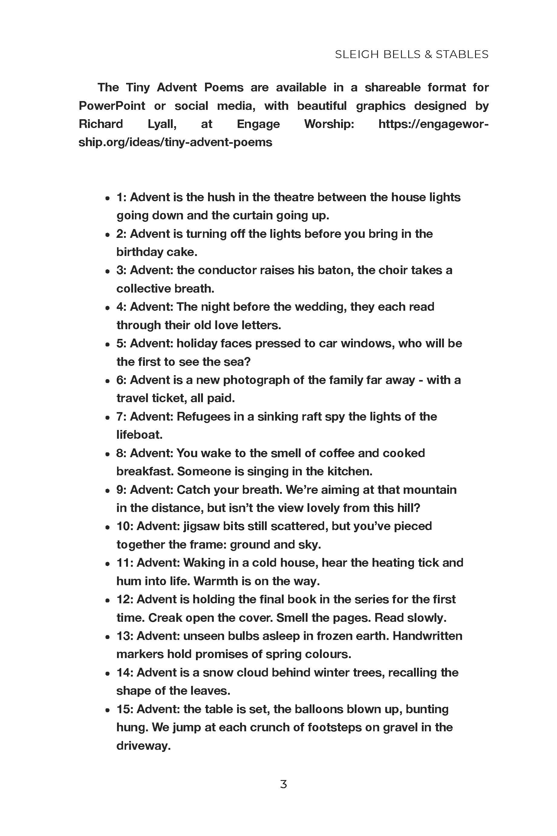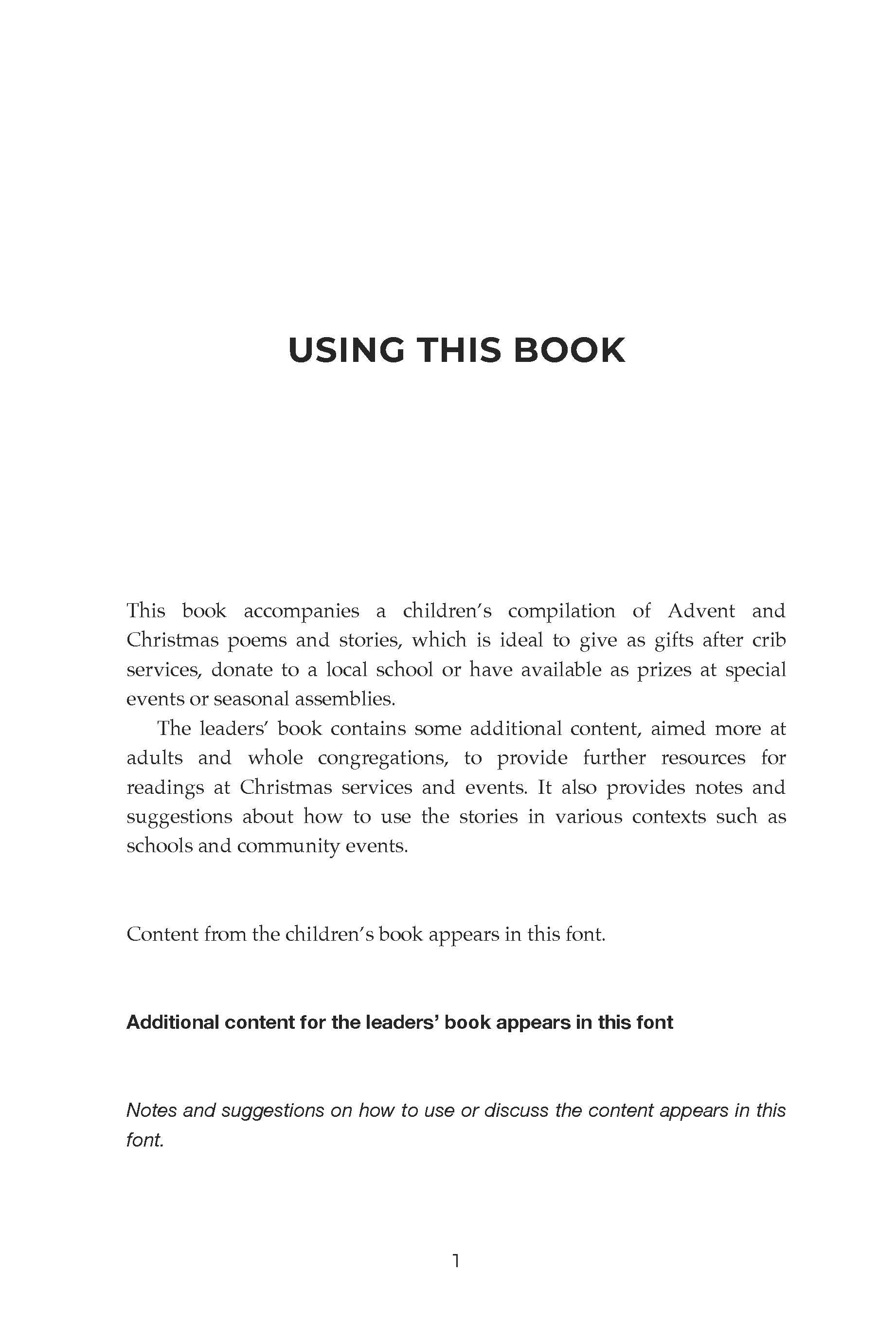 Packed full of seasonal stories, poems and suggestions for the church family to share during Advent and Christmas, this book will become your go-to resource for everything from crib services to Christmas fairs. Whether you're looking for a school assembly on the theme of Advent, a reading for a carol service or an idea to invite the whole community into a new festive tradition, you will find it in this compilation that covers every occasion from Advent through to Candlemas.