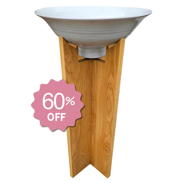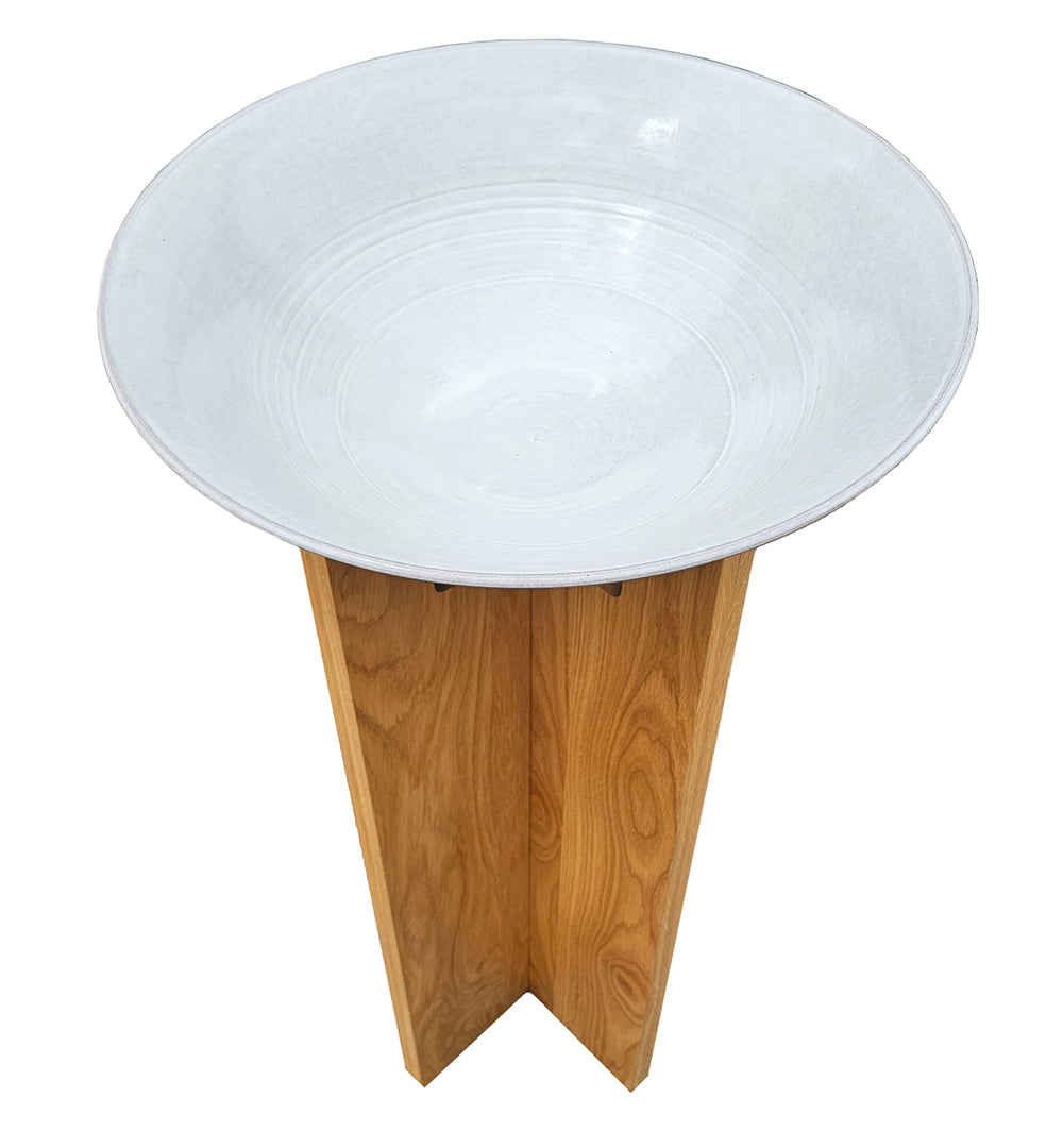Natural oak stand with a hand-turned ceramic bowl.100cm tall, 49.5cm bowl width*EX-DISPLAY - slight wear and tear, see photos*