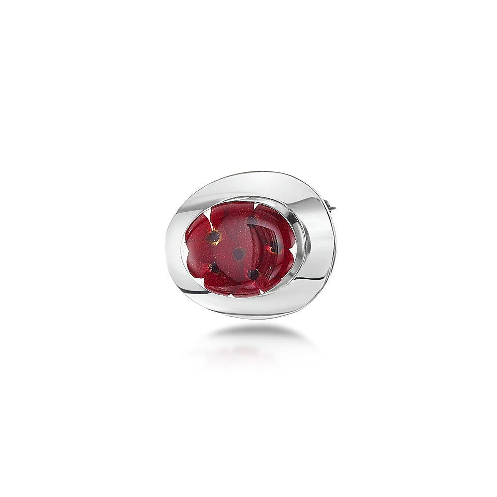 Sterling Silver Brooch handmade with real poppy flowers - Large Oval - Includes stylish gift box - Perfect gift.