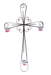 Wall Mounted Cross Of Light- With Clear Glass Candle Holders